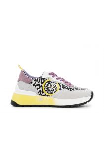Sneakers allacciate con tomaia in pelle scamosciata e tessuto leopardato. Nuova suola running con spoiler effetto metallico e spruzzatura degrade' con logo CafèNoir in rilievo