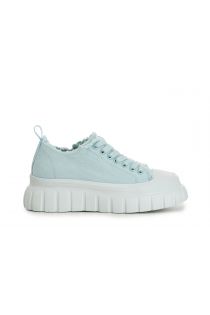 Sneakers allacciate in tessuto sfrangiato suola rialzata decorata da un pattern rigato. modello contraddistinto da una punta in gomma che decora la calzatura.