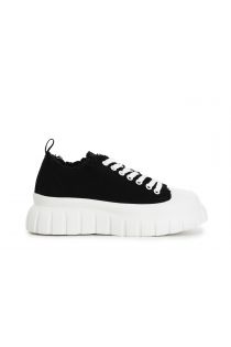Sneakers allacciate in tessuto sfrangiato suola rialzata decorata da un pattern rigato. modello contraddistinto da una punta in gomma che decora la calzatura.