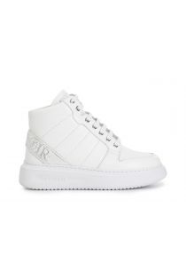 Sneakers in pelle alta fino alla caviglia. cuciture laterali e grazioso nastro posizionato nella parte posteriore con la scritta cafènoir fatta di strass valorizzano la calzatura. la suola è a cassetta e il soletto è in pelle.