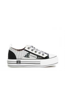 Sneakers basse effetto patchwork in tessuto con suola in gomma caratterizzata da inserti colorati.