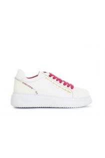 Sneakers con particolari cuciture ornamentali a contrasto di colore. tomaia e sottopiede in pelle. chiusura con lacci. suola a cassetta.