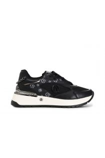 Sneakers con suola running personalizzata con logo laterale, tomaia in mesh e pelle con inserti laminati.Una piccola catena sul dietro viene utilizzata come decoro e logo metallico arricchisce invece la parte laterale.