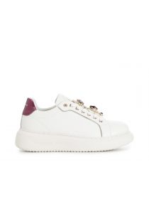 sneakers da donna in pelle con accessori gioiello removibili bianco/bordeaux