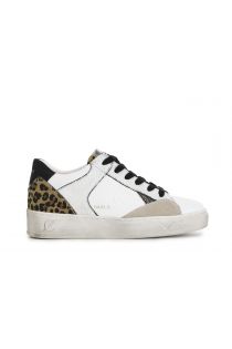 sneakers da donna in pelle e pelle scamosciata con riporti effetto metallico bianco maculato