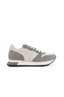 sneakers da donna in pelle scamosciata e tessuto grigio