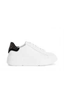 sneakers donna in pelle con applicazioni tallone bianco/nero