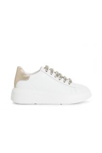 Sneakers donna in pelle rivestita con riporto effetto glitter. la suola è alta 4 cm.
