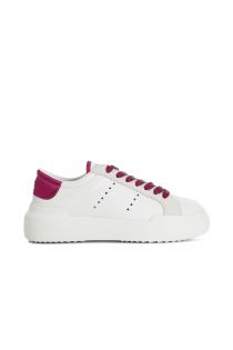 Sneakers donna in similpelle. colletto e stringhe colorate.