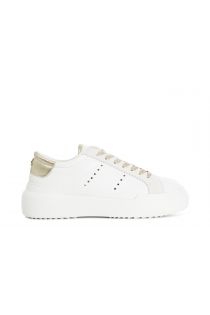 Sneakers donna in similpelle. colletto e stringhe colorate.