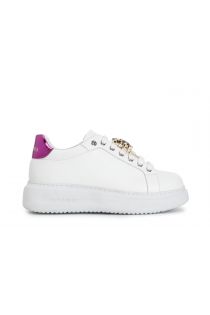sneakers in pelle con accessorio gioiello bianco fuxia