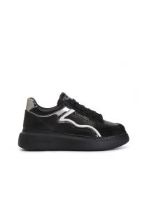 Sneakers in pelle con inserti glitterati e laminati arricchita da logo cafènoir metallico posizionato sulla parte laterale. suola a cassetta e soletto in pelle.