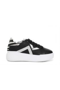 Sneakers total white in pelle con dettagli in cavallino maculato sul retro