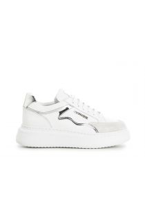 sneakers in pelle con dettaglio specchio su suola a cassetta bianco/argento