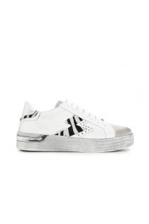Sneakers in pelle con suola effetto vintage. la tomaia in pelle è arricchita da inserti in tessuto con glitter o dettagli animalier a seconda della variante colore