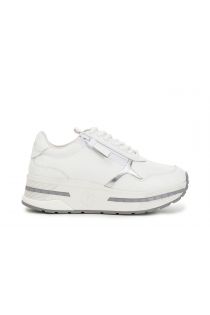 Sneakers in pelle con inserti laminati realizzata con una delicata stampa all over che riporta il monogramma CN. Un ulteriore logo metallico decora la tomaia sul lato insieme ad una cerniera. Suola running monocolore.
