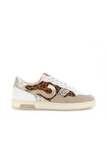 Sneakers in pelle con inserti in cavallino maculato dettagli glitterati e fodera in tessuto. un mix audace di comfort e stile animalier per look decisi e originali.