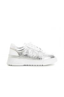 Sneakers in pelle metallizzata con monogramma laterale in rilievo suola a cassetta leggera. modelleria tondeggiante e dinamica.