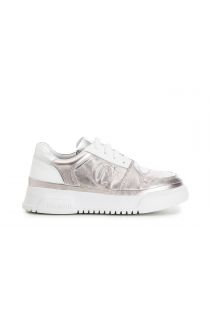 Sneakers in pelle metallizzata con monogramma laterale in rilievo suola a cassetta leggera. modelleria tondeggiante e dinamica.