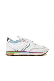 Sneakers in pelle multicolore con leggerissima suola running. pellami di varie tonalità pastello e diversi materiali si fondono per creare un modello versatile e leggiadro vero emblema della primavera.