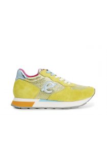 sneakers in pelle scamosciata e glitter giallo