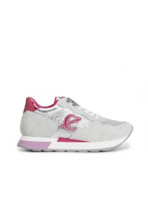Sneakers in pelle scamosciata e glitter. logo embossed laterale con monogramma cafènoir. chiusura con lacci colorati. suola in gomma multicolor.