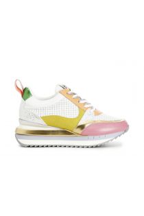 Sneakers allacciate con tessuto glitter suola running con inserto cromatico in linea con il colore della tomaia.