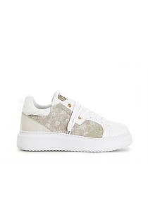 sneakers in tessuto logato e pelle su suola a cassetta multi beige