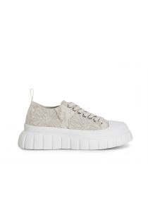 Sneakers allacciate in tessuto sfrangiato. punta in gomma. chiusura con lacci in tono alla calzatura. suola rialzata 55mm decorata da un pattern rigato.
