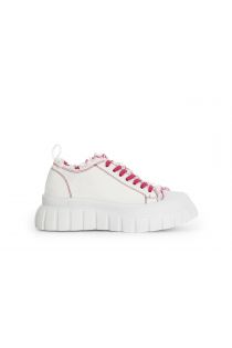 sneakers in tessuto sfrangiato e cuciture a contrasto bianco/fuxia