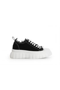 Sneakers allacciate in tessuto sfrangiato e cuciture a contrasto. punta in gomma. chiusura con lacci in tono alla cucitura a contrasto. suola rialzata 55mm decorata da un pattern rigato.