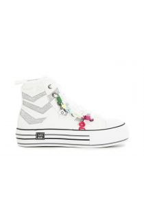Sneakers mid in tessuto e glitter arricchite da un colorato accessorio removibile.