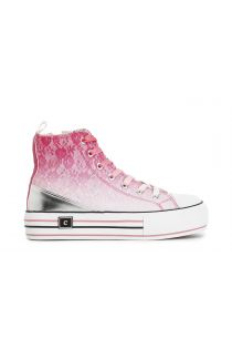 sneakers mid pizzo degradé con lacci sfumati fuxia