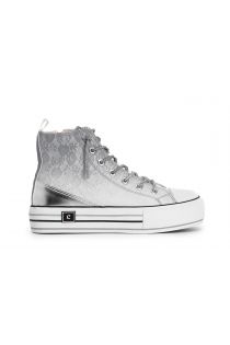 Sneakers mid caratterizzate da un particolare pizzo effetto colore degradé. lacci in strass sfumati. suola a cassetta da 40mm con dettagli colorati.