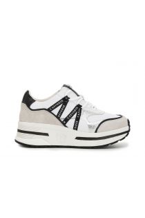 Sneakers multimateriale con passalacci logati. La tomaia ha una shiloutte moderna e slanciata e la suola running è anch'essa personalizzata con il logo esteso