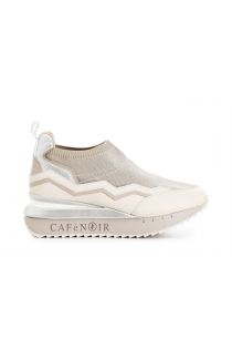 Sneakers slip on in tessuto lurex e pelle suola running con inserto e logo. la sezione in pelle è associata al tessuto tramite un delicato gioco di zig zag delicatamente rifiniti.