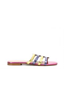 Special Price: Sandali bassi modello ciabatta con fascette laminate sulle sfumature del fuxia.