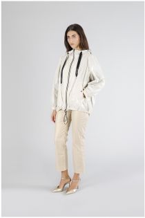 Simpatico spolverino packable in nylon ultralight in contrasto colore che all'occorrezza diventa un comodo zainetto. manica lunga.