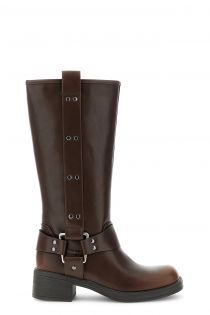 Stivale con sperone e fibbie. tacco alto 47 mm. il soletto è in pelle. dal design deciso conferiscono un look grintoso e pratico.
