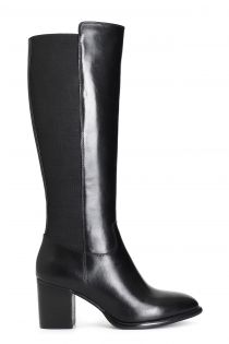 Stivale da donna in pelle con elastico. tacco spesso alto 60 mm. il soletto è in pelle.