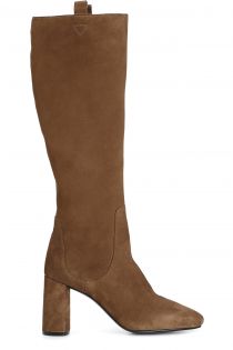 Stivale in camoscio. modello iconico dalla forma leggermente arrotondata per uno stile innovativo e raffinato. tacco alto 80 mm. il soletto è pelle.
