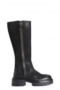Stivale in pelle con maxi zip ornamentale.cerniera nella parte interna della calzatura. il soletto è in pelle. modello versatile e dinamico ideale per completare moltissimi outfit.