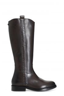 Stivale in pelle con una cascata di borchie laterali che donano allo stesso tempo armonia e dinamicità grazie anche ad gioco di impunture. il soletto è in pelle.