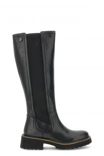 Stivale in pelle con elastici laterali con borchietta personalizzata. tacco alto 50 mm. il soletto è in pelle.