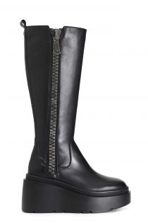 Stivale in pelle con cerniera in metallo a decoro. tacco 70 plateaux 30. cerniera interna come chiusura. tacco 70 mm e plateau 30 mm. il soletto è in pelle.