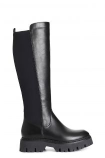 Stivale da donna in pelle e tessuto elasticizzato per un look super grintoso. il soletto è in pelle. modello versatile e dinamico ideale per completare moltissimi outfit.