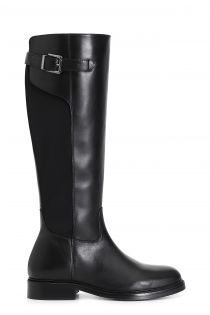 Stivale da donna in pelle e lycra stretch con fibbia a decoro. il tacco è alto 30mm e il soletto è in pelle.