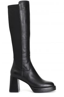 Stivale in pelle e stretch con tacco 80mm e plateau 20mm. il soletto è in pelle. comodità ed eleganza allo stesso tempo ed un carattere unico adatto ad ogni outfit.
