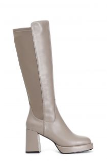 Stivale in pelle e stretch con tacco 80mm e plateau 20mm. il soletto è in pelle. comodità ed eleganza allo stesso tempo ed un carattere unico adatto ad ogni outfit.