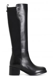 Stivale da donna in pelle e stretch arricchito da borchie. il tacco è alto 50mm e il soletto è in pelle.